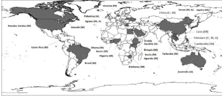 Distribución geográfica de los trematodos transmitidos por la tilapia