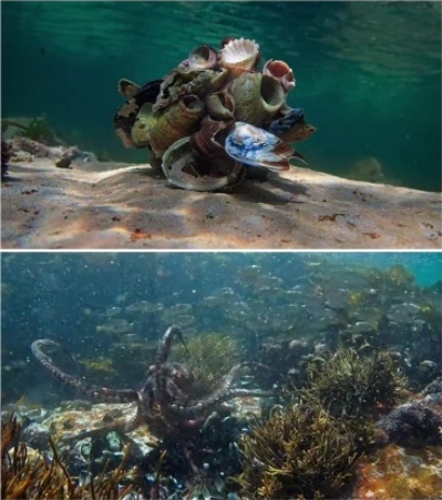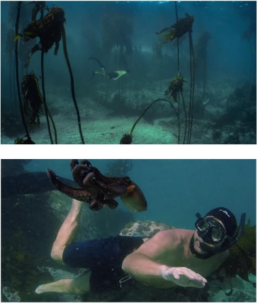 Figura 2 Foster descubre al pulpo en el bosque de algas.