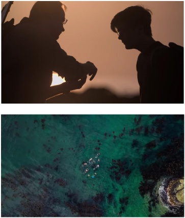 Esa reconexión con la sociedad a modo de redención personal se quiere confirmar con un epílogo que muestras unos rótulos yuxtapuestos sobre una imagen de ojo de halcón: “Craig sigue buceando todos los días, pero ya no lo hace solo. Cofundó Sea Change Project, una comunidad creciente de buceadores dedicada a la protección permanente de los bosques de algas”(Ehrlich y Reed, 2020) (Figura 7).