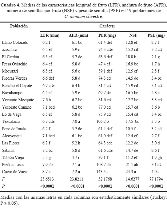 Las plantas de C. annuum silvestre mostraron diferencias significativas entre sus poblaciones en todas las características (cuadros 3 y 4).