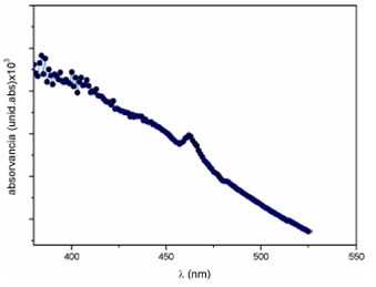 The optical absorption spectra of the Ni doped ZnO sample, obtain by an UV-visible spectrophotometer in the range 330-525 nm is shown in Fig. 5.