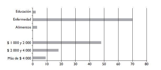El origen del endeudamiento se atribuyó en todos los casos a la falta de ingresos económicos; la eventualidad de enfermedad fue la preocupación dominante: “Pedir prestado es lo que hay porque te saca del apuro, o lo haces o tal vez ya no la cuentas tú o tu familia”.