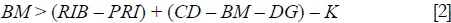 Para evitar pérdidas abultadas de señoreaje (lo cual ocurre cuando BM<TD),14 que podrían colocar presión sobre el nivel y volatilidad de la tasa de interés, el acervo de la base monetaria deberá ser mayor que el de títulos de deuda propios de la Banca Central. Así, la condición BM > TD implica que: