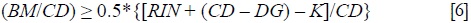 El segundo índice corresponde a una medida de la fuente de liquidez proveniente de la expansión del crédito interno, ya sea a través del canal exógeno de crédito al gobierno o del canal endógeno de crédito al sector financiero. Le definimos como la ratio entre la base monetaria y el crédito interno (BM/CD), denominado autonomía interna, y aplicará para el caso en el cual el mayor componente del activo es el crédito interno e.g. en el caso de todas las economías emisoras de reservas. Dado que la expansión del crédito interno conduce a la expansión de la base monetaria, es de esperar que el valor de esta ratio permanezca cercano a la unidad. Sin embargo, la ecuación [4] es nuevamente necesaria para determinar su valor mínimo: