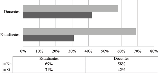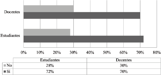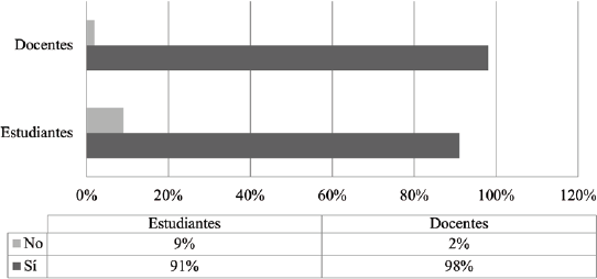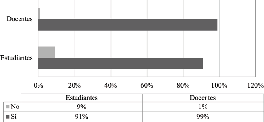 Además, en lo que respecta a las barreras tecnológicas, se tiene que 9% de los estudiantes y 2% de los profesores no cuentan con computadora en casa, el mismo porcentaje de alumnos no cuenta con Internet, en principio, esta brecha digital es de acceso a las tecnologías, lo cual, desde la perspectiva de Quintana (2020), es una categoría urgente de atender que establece la no discriminación como un derecho, así como la obligación del sistema educativo de proveer los recursos materiales y económicos necesarios para una educación de calidad.