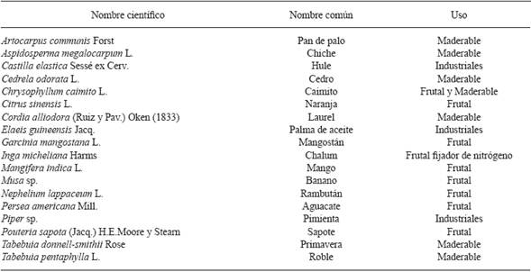 Cuadro 2 Especies de árboles de sombra utilizados en cacao (Theobroma cacao L.) en la Región Soconusco y Región Norte de Chiapas, México.