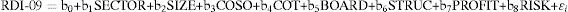 As can be seen in Table 2, the variables SECTOR, SIZE and RISK show the highest correlation index regarding the dependent variable RDI-09 (0.473; 0.429 and 0.451, respectively) and a statistically significant value (p < 0.05), while the remaining variables show a lower significant value (p > 0.05) as well as a low correlation index (their Spearman correlations are equal or less than 0.35). Therefore, the results indicate that there is no significant association between the variables COSO, COT, BOARD, STRUC, and PROFIT and the RDI-09.
