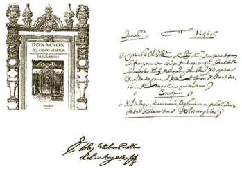 y copiar los dichos libros los que les pareciere, sin que de ninguna suerte se le pueda impedir, porque a este efecto principalmente dirigimos esta donación.