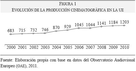 Si tomamos como referencia la producción cinematográfica europea, observamos, como nos muestra la Figura 1, que el incremento de obras cinematográficas ha sido constante en la última década (20002010), de hecho ha sido muy superior al de otras industrias como la estadounidense, llegando a superar las mil producciones.