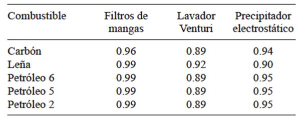 La eficiencia de cada una de las tecnologías de abatimiento analizadas se presenta en el cuadro III.