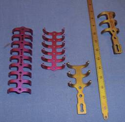 Figura 4: Material de fijación costal StraCos® (Strasbourg Costal Osteosyntheses System, MedXpert, Heitersheim, Germany). De izquierda a derecha, clip costal de nueve segmentos, clip costal de seis segmentos, clip de tres segmentos y barra conectora de 190 mm.