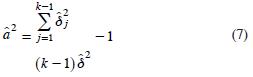 de los valores propios δj de la matriz de los efectos del diseño generalizados; â es un estimador del coeficiente de variación de los valores propios δj .