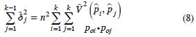 es el elemento i, j de la matriz de covarianza de los estimadores de proporciones; poi y poj corresponden a las proporciones teóricas para las categorías i y j. Los valores de