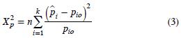 Si las observaciones son independientes y cada individuo tiene la misma probabilidad de ser seleccionado en la muestra, el estadístico Xp2 sigue asintóticamente una distribución jicuadrada con k1 grados de libertad.
