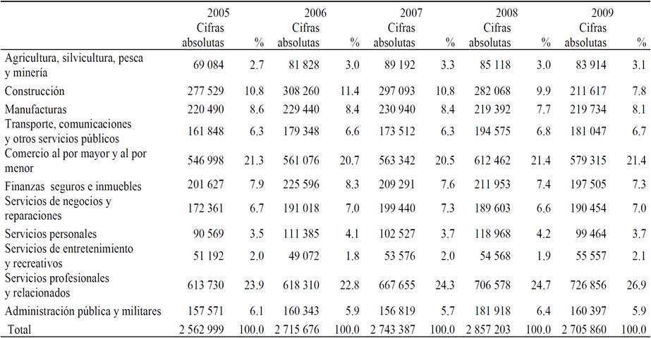 Entre 2007 y 2011, los sectores de manufacturas y comercio al por mayor y al por menor, sumaron pérdidas de empleo para la población mexicana de aproximadamente 20 mil puestos de trabajo.