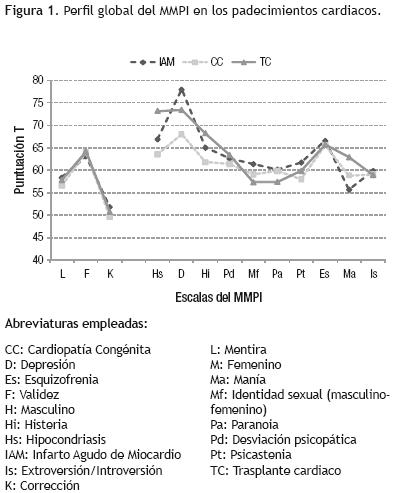 Methods. We evaluated 137 patients with congenital heart, acute myocardial infarction (AMI) or awaiting a heart transplant who came to the National Institute of Cardiology Ignacio Chavez. We used multiphase Personality Inventory, which provides information on personality traits and psychopathology.