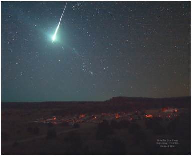 Figura 5. Entrada a la atmósfera terrestre de un fragmento rocoso proveniente de algún lugar del espacio exterior. Posiblemente algún microorganismo pudiera sobrevivir a esas condiciones extremas de presión y temperatura. Foto: Howard Edin. Oklahoma City Astronomy Club.