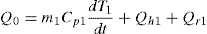 The first term on the right hand side of Eq. (5a) represents the energy used to raise the temperature of the heating plate, while the second and third terms represents losses by convection and radiation, respectively; m 1 is the mass of the heating plate and C p1 its specific heat. The convective heat (Q h1 ) can be estimated as (Çengel, 2003):