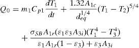 Substituting the convection, Eq. (5b), and radiation, Eq. (5c), terms into Eq. (5a) leads to the energy balance for the heating plate: