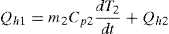 with C p2 as the specific heat of the inner fluid (air) and m 2 its mass.