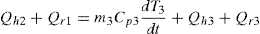 Finally, the energy balance of the oven body (element 3) is shown in Figure 5d. In this condition, the quartz tube receives convective heat from the inner fluid (Q h2 ) and radiation heat from the heating plate (Q r1 ). The oven body (quartz tube) uses part of such energy to raise its temperature, and dissipates part of the energy to the environment by convection (Q h3 ) and radiation (Q r3 ), i.e.: