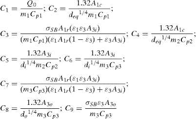 Here, h 3 = 1.32[(T 3 − T 0 )/d o ]1/4 with d o as the external diameter of the quartz tube with a corresponding surface area A 3o , exposed to free convection.
