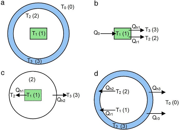 The process of convection heat transfer to the external environment (Q h3 ) at temperature T 0 , can be expressed as: