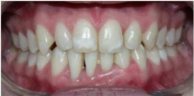 Figure 1 Initial clinical examination. A remarkable thin phenotype and RT3. sourounding teeth 4.1 and 4.2 is shown. Both teeth were also associated to type II mobility and dental extrusion.