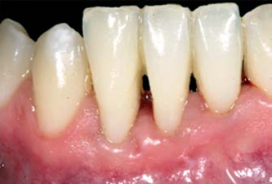 Figure 4 Recipient site five months after surgery. The MIE- FGG is completely blended, achieving an esthetical result. Although GR still remains the phenotype is thickened.