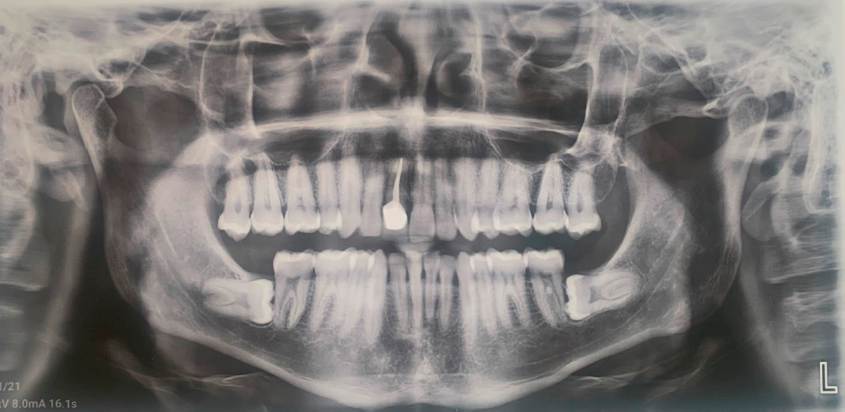 Al finalizar el tratamiento de ortodoncia se retiraron los aparatos fijos y se colocaron retenedores. En ortopantomografías y laterales de cráneo, se puede identificar la salud periodontal y endodóntica del diente trasplantado, así como la integridad radicular.