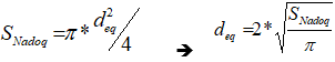 Como no se cuenta con coeficientes específicos para elementos de sección rectangular que permitan normalizar el resultado del ensayo a elementos de un único largo, fueron considerados los coeficientes que surgen de la bibliografía para elementos cilíndricos de hormigón (ASTM C42, 2012; BS EN 12504-1, 2009; UNIT-NM 69, 1998; IM, 2001). Para lo cual se definió el diámetro equivalente d eq , según ecuación (3), parámetro que corresponde al diámetro de una sección circular de igual área que la sección transversal nominal de los adoquines SNadoq.