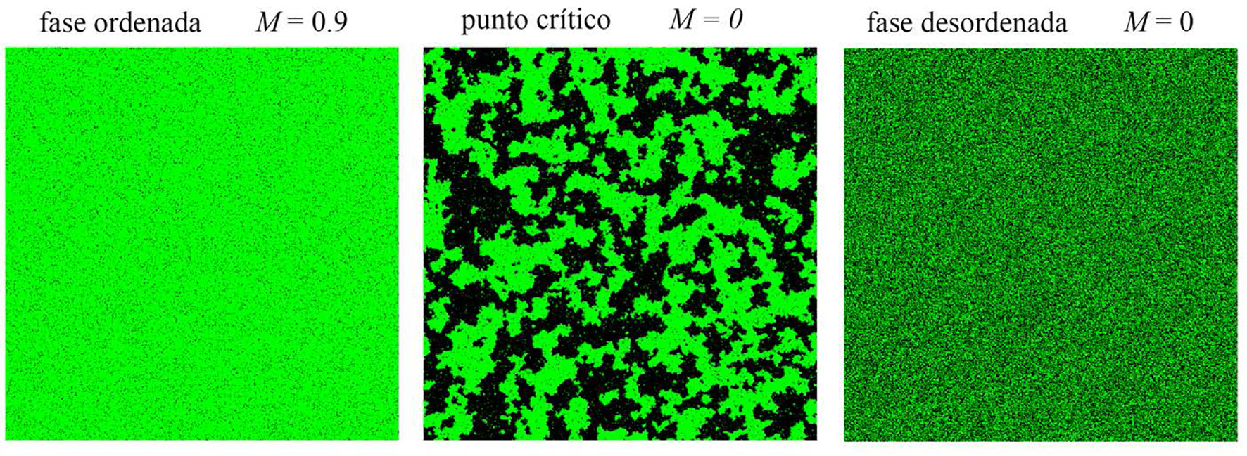 Figura 6 Estructura del sistema en las tres fases dinámicas: ordenada, crítica y desordenada.