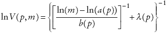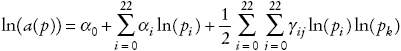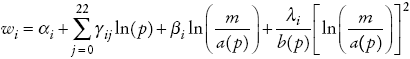 De la ecuación 1, y aplicando la identidad de Roy, se obtiene la ecuación de porcentaje de gasto en cada bien i = 0, 1, ..., 22: