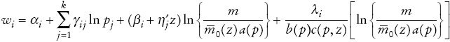 A continuación, con base en Banks, Blundell y Lewbel (1997), incorporamos la variable demográfica de pobreza, la cual denominamos como z. Con esto, eR (p, u) es la función de gasto de un hogar de referencia, que son los hogares en pobreza. Esta función, usando Ray (1983) y Poi (2012), se escribe de la siguiente manera: