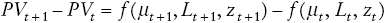 Aunque Datt y Ravallion no consideran la posibilidad de modificar la variable z, debido a que generalmente la pobreza para dos puntos en el tiempo se estima utilizando una z constante. Sin embargo, cuando z se deflaciona utilizando los índices de precios contenidos en la canasta de satisfactores utilizados como punto de referencia para la medición de la pobreza y estos crecen a mayor velocidad que el índice nacional de precios al consumidor utilizado para deflacionar los ingresos -o cualquier otra variable utilizada como indicador del bienestar- pueden darse situaciones en las que z se aprecie o se deprecie en términos reales respecto al ingreso. Por tanto, también es pertinente preguntar cuál sería el nivel de PVt si en lugar de evaluar esta variable en función de μt, , Lt y zt, evaluamos PV en función de μt , Lt y zt, + 1, es decir, se obtiene la pobreza que resultaría en una situación en la que los precios de los satisfactores incluidos en la línea de pobreza, relativos al ingreso, varían de la manera en la que en realidad lo hicieron, mientras que tanto el ingreso promedio de la población, como su distribución, permanecen inalterados. Este componente se calcula como Z=PV(μt, Lt, zt,+1)-PB (μt, Lt, zt), y es el componente central de nuestro análisis. Con esta misma lógica, se puede ir un poco más allá de los cambios agregados, partiendo del principio de que: