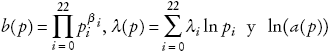 en la que pi es el precio del bien i para i = 0, 1, ..., 22, b(p) denota la función que agrega precios