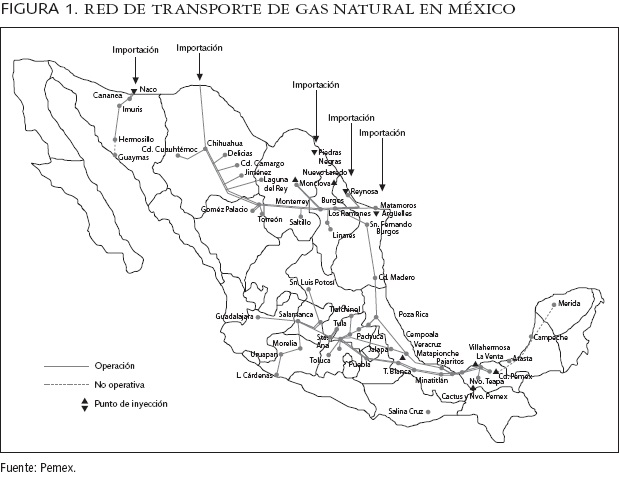 El sector del gas natural de México se reformó en 1995 por medio de una enmienda a la ley regulatoria del artículo 27 constitucional (la ley del gas), a fin de permitir la inversión privada en nuevos proyectos de transporte y distribución, almacenamiento y comercialización del gas natural. La ley establecía principios para desarrollar la industria del gas natural en el país. Poner en práctica tales principios requería la creación de un marco regulatorio que especificase la organización, operación y regulaciones de la industria. Se lo diseñó en 1995 y se lo presentó en el Reglamento de Gas Natural, que tomaba en cuenta, explícitamente, las condiciones no competitivas de la producción, ya que Petróleos Mexicanos (Pemex) habría de mantener su monopolio estatutorio sobre la exploración y producción de gas, y se concentraría en elevar la producción de gas natural y mantener su gran red de transporte, de más de 9 mil km (véase la figura 1).21