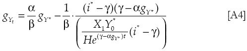 Since: gY = (1/γ)dY/dt and gy* is (1/T)(dY*/dt), [A.2] becomes: