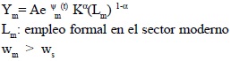 2) El sector urbano moderno usa una tecnología tipo Cobb-Douglas:
