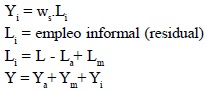3) El sector informal urbano tiene una función de producción con retornos constantes en relación con el trabajo: