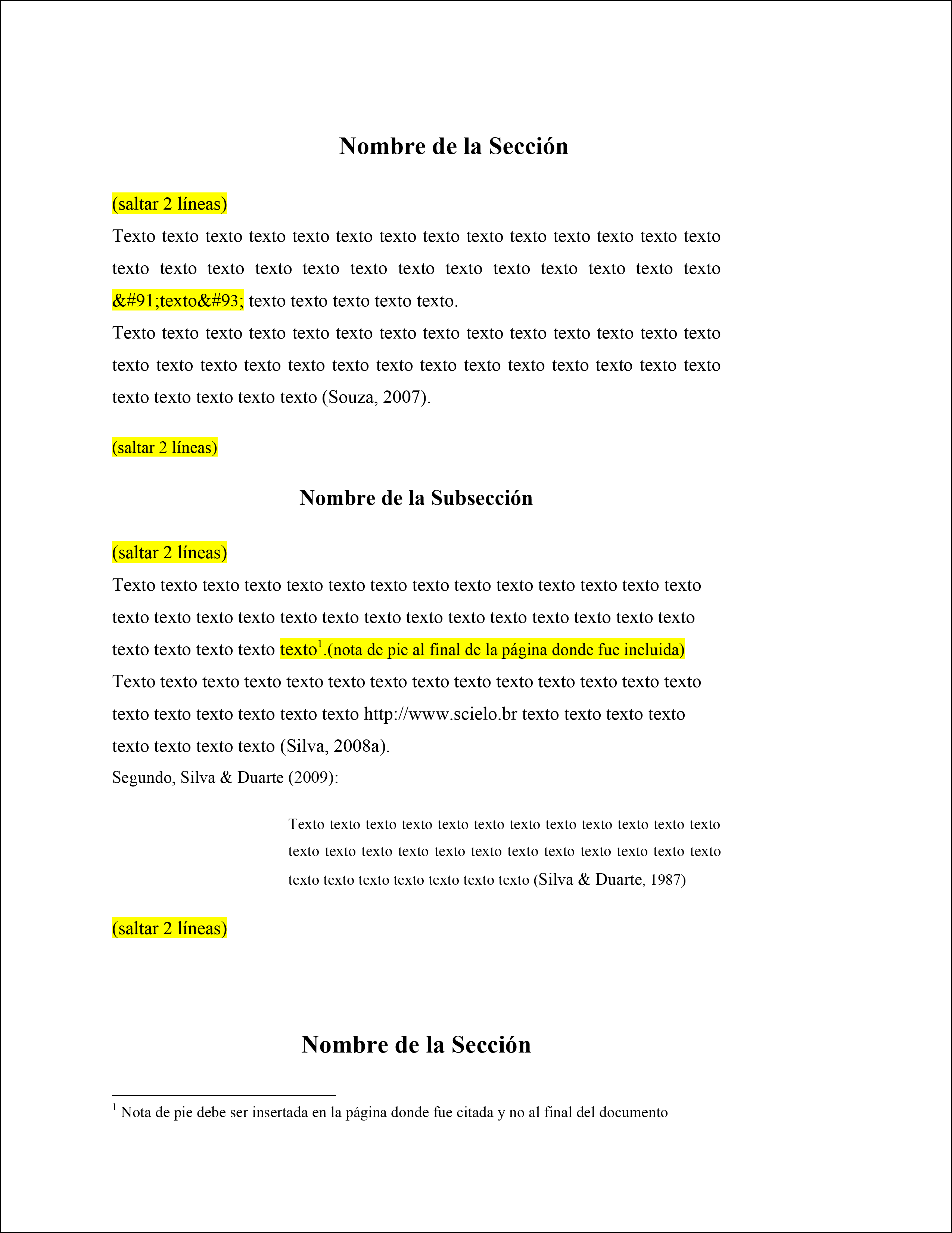 - Citas del tipo autor y año deben estar entre paréntesis, con el apellido del autor seguido por el año (Souza, 2007), primera letra en mayúscula;