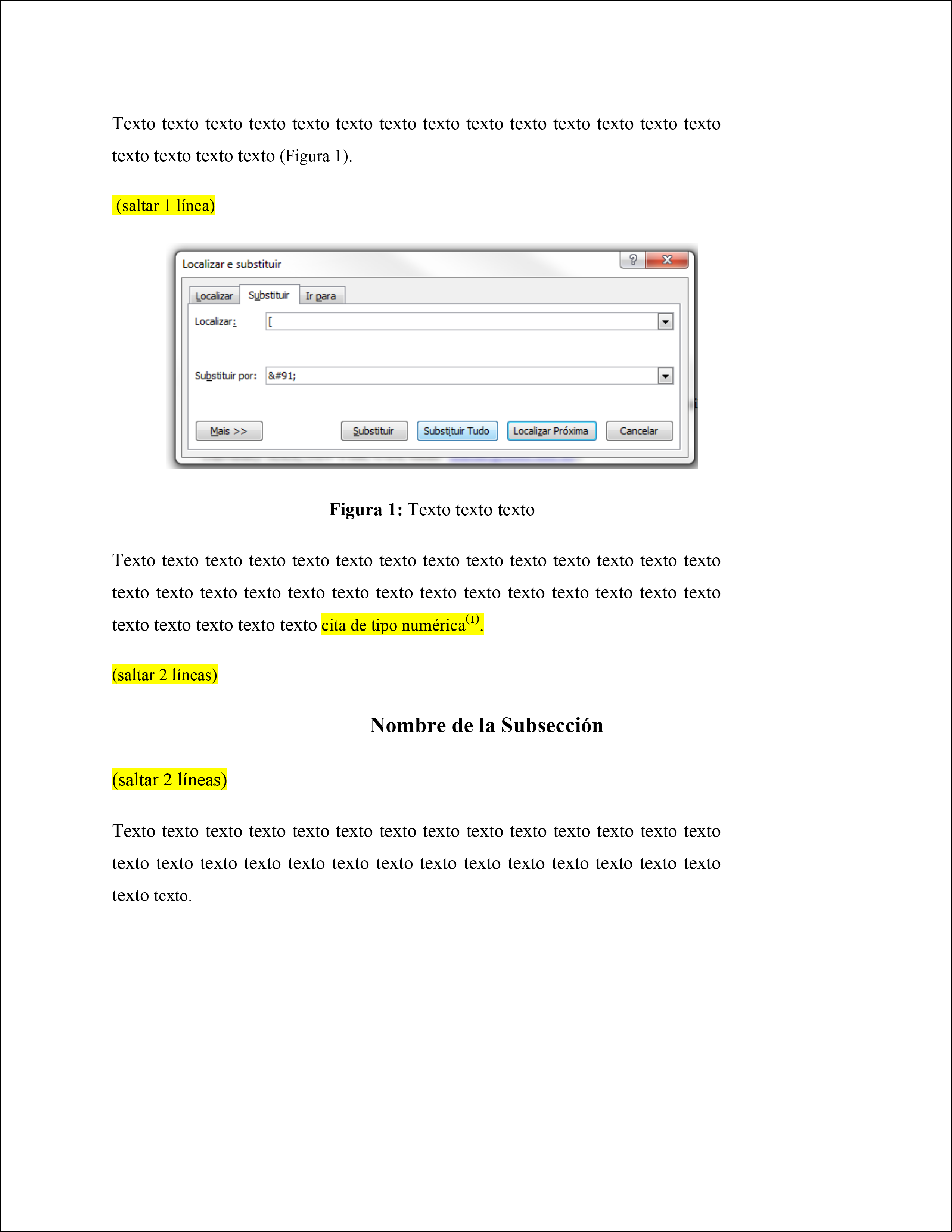 | Subtítulos de sección | 14 puntos | Centrado | Negritas | Una línea en blanco antes del Subtítulo de sección y otra después | Cuando existan subsecciones de subsección formatear en tamaño 13 negrita y centrado. |