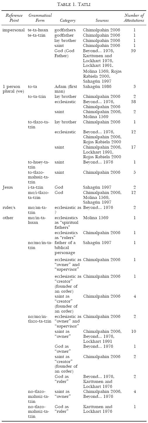 The tables below present the material on which I based my analysis. In order to remain as clear as possible, I marked the plural only when a given grammatical form did not occur in singular at all. As the analysis has not included the problem of honorifics, the tables do not encompass the vocative form of kinship terms. If a sacred being is categorized as "owner", it always implies the context of assigning property to "deities" in order to sustain them, discussed above. This category, as well as St. Mary as "intercessor" is most often attested in testaments.