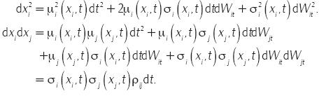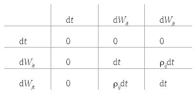donde dWit ~ N (0, dt) es un movimiento browniano o proceso de Wiener. Considere también la siguiente tabla de multiplicación para la diferenciación estocástica,