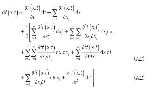 Obsérvese que, en la tabla anterior, el coeficiente de correlación ρii = 1, para todo i = 1,…, n. Para obtener el lema de Itô, primeramente se hace una expansión en serie de Taylor hasta los términos de segundo orden, ya que los términos de orden mayor se anularían según la tabla arriba enunciada. Por lo que se tiene