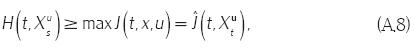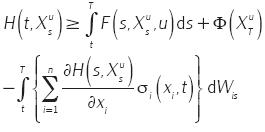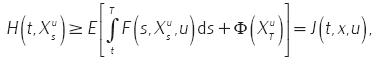 Demostración del teorema 2. Supóngase que H y g son dadas como se enunció anteriormente. Se elije una regla de control arbitraria u ∈ U y un punto fijo (x, t). Se define el proceso Xu en el intervalo de tiempo [t,T] como la solución de la ecuación