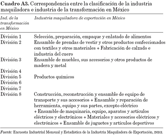 Como se muestra, no existe actividad maquiladora correspondiente a las divisiones 4,6 y 7 de la industria de la transformación. En adición, se excluyen del análisis los grupos 11 de "otras industrias manufactureras" y 12 de "servicios", para evitar imprecisiones en la comparación entre países.