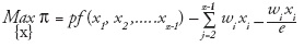 Propuesta: asuma que la tecnología de producción está definida por f (x1, x2,.....xz-1), donde x = (x1, x2,.....xz-1) es el vector de insumos. La firma busca maximizar.