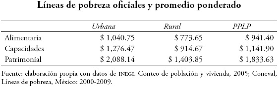 El promedio ponderado de las líneas de la pobreza rural y urbana arroja estos resultados: