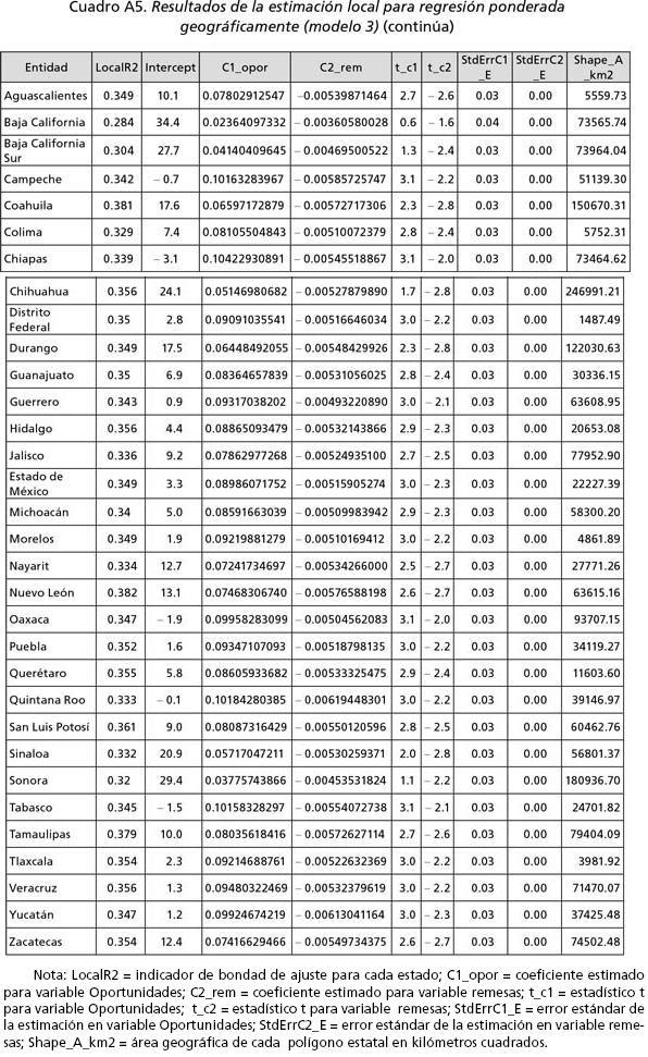 Se observa que el modelo 3 presenta un mejor ajuste con una R2 de 0.48 y con un valor menor que en el modelo 2 para el criterio de información de Akaike corregido (AICC) para estimaciones geográficamente ponderadas de 250, lo cual también representa un mejor ajuste. Asimismo, el modelo 3 también tiene una menor desviación estándar de los residuales, lo que refuerza su selección como modelo de mejor ajuste en comparación con el modelo 2.
